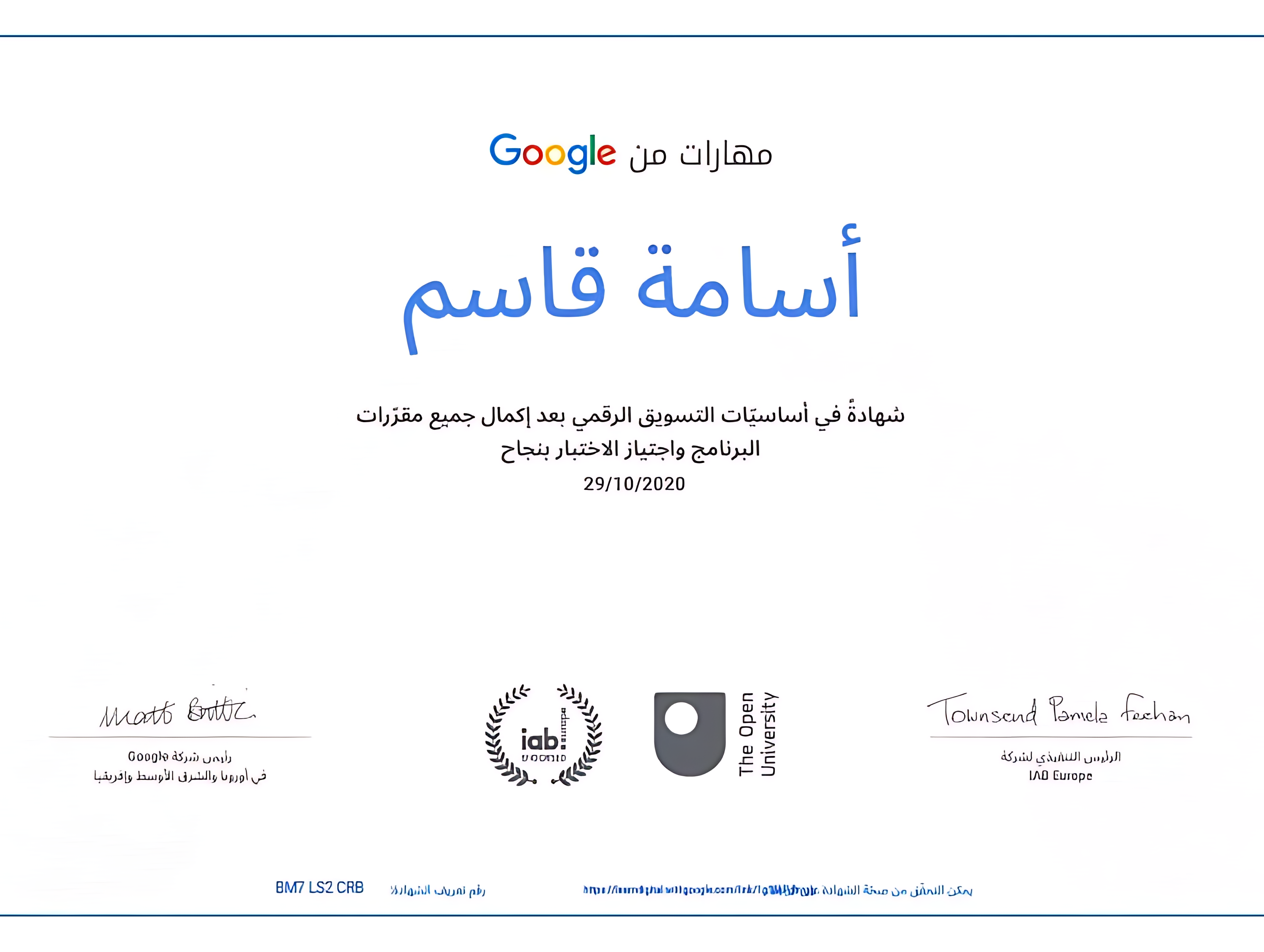 حاصل على شهادة من جوجل في أساسيات التسويق الرقمي